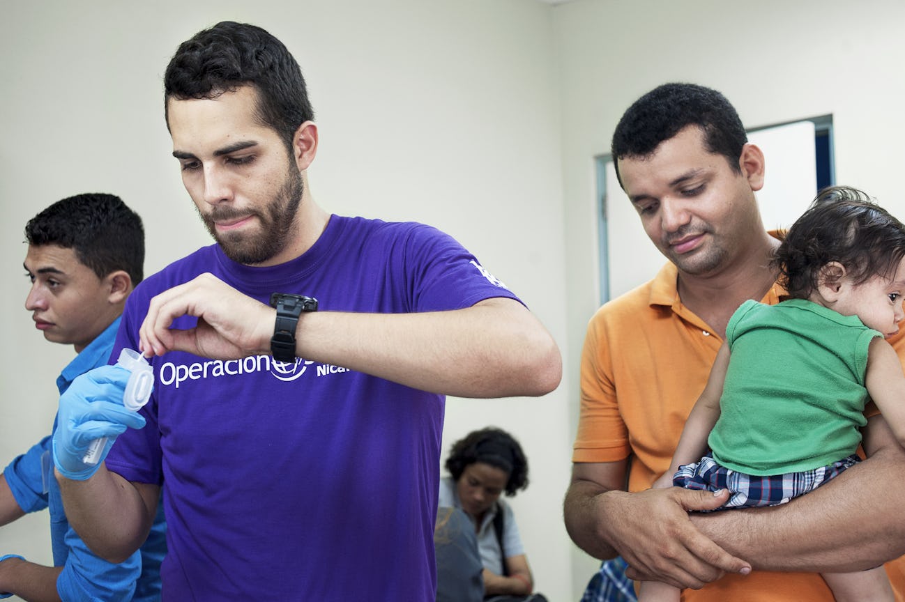 Vid Operation Smiles medicinska uppdrag i staden Cebu, är projektledaren för The International Family Study (IFS), Frederick Brindopke, i full färd med att samla in salivprover. Prover tas från varje baby som väntar på operation och skickas sedan på genetisk analys. Han håller ett av barnen i sin famn och drar försiktigt med en tops på kindernas insida. Babyn tittar nyfiket på Frederick, fascinerad av den kittlande känslan.