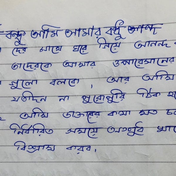Dagen efter operation hade Gurupada för ont för att prata, men han skrev i stället ner sina tankar på en lapp.