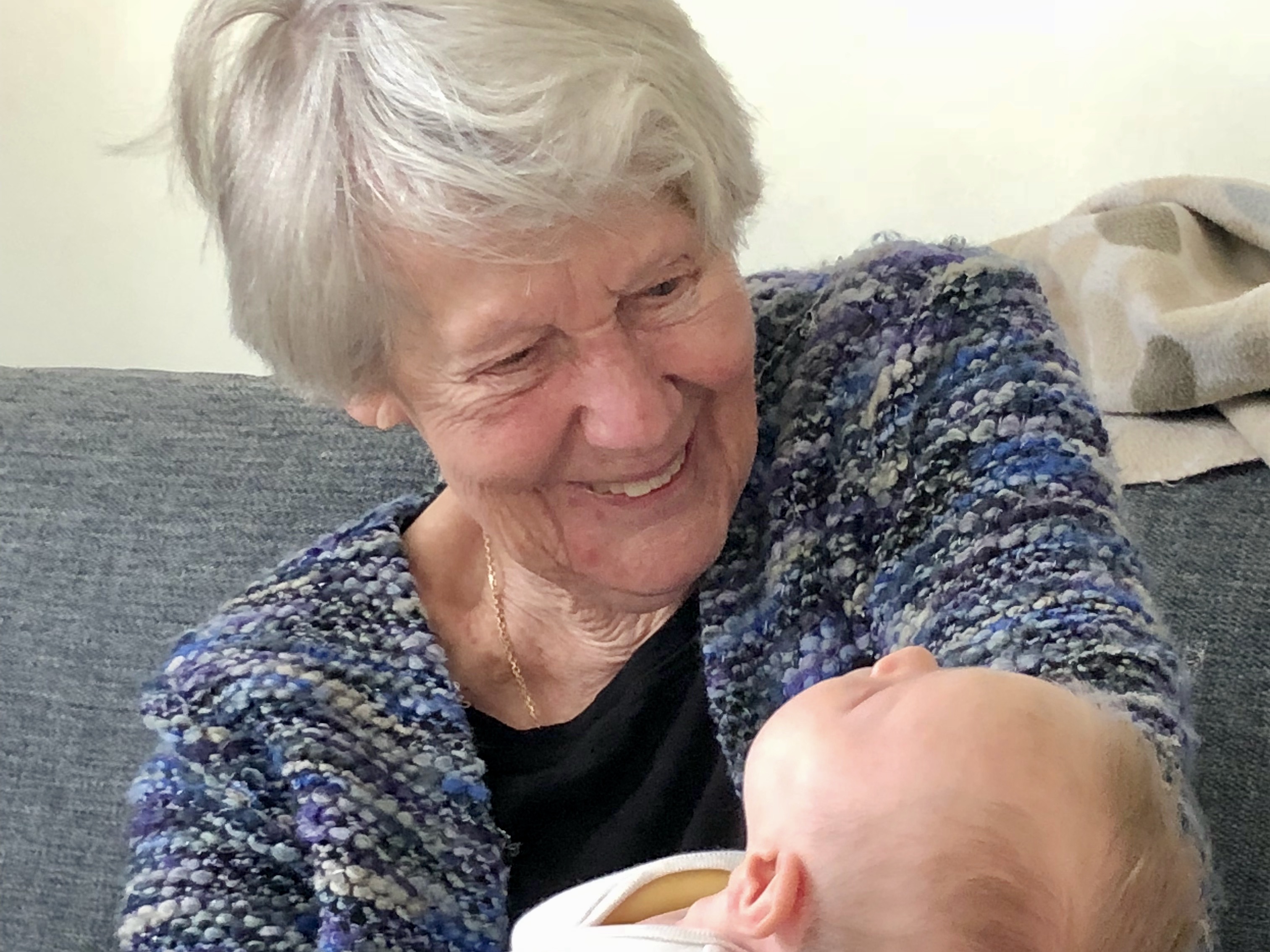 Carine Simonsson fick ett långt och rikt liv med barn, barnbarn och barnbarnsbarn. Här med barnbarnsbarnet Eyra i famnen. Foto: Privat -