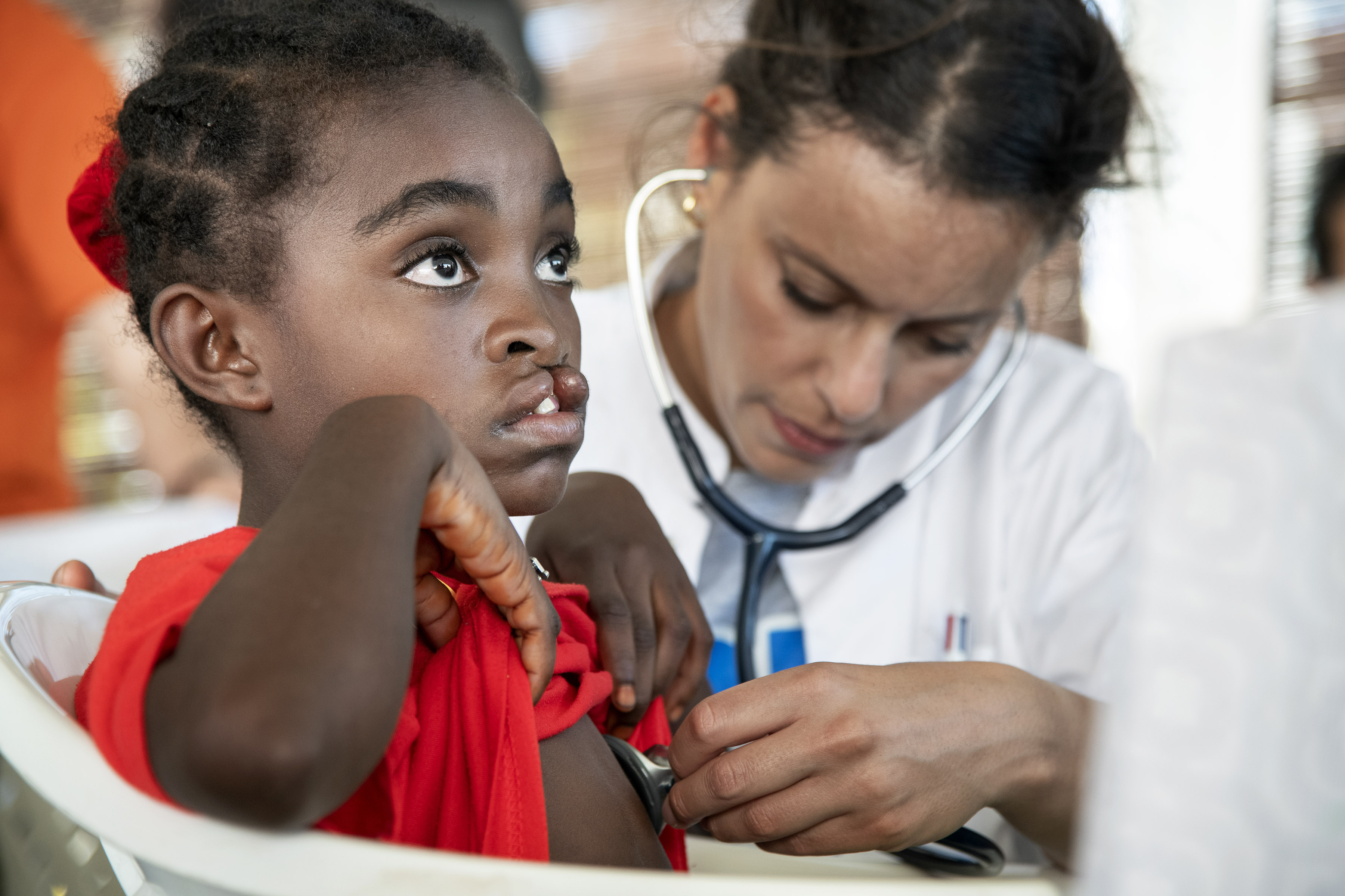 Den holländska barnläkaren och volontären Valerie Slooff undersöker Imany för att se om hon är frisk och stark nog för att få en operation under veckan. Foto: Rohanna Mertens