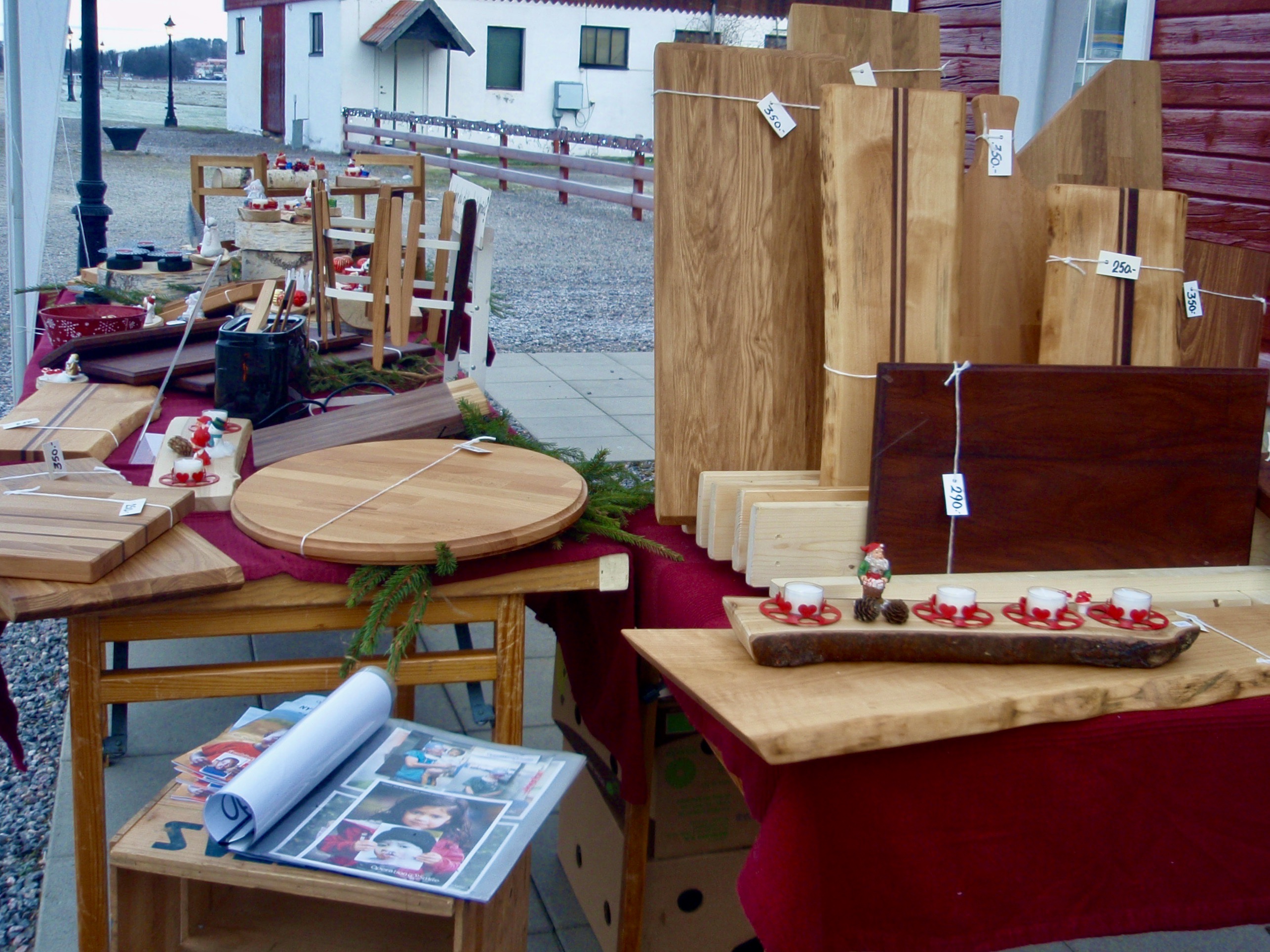 Allra bäst sålde Lars skärbrädor, som fanns i en rad former och storlekar. Foto: Privat