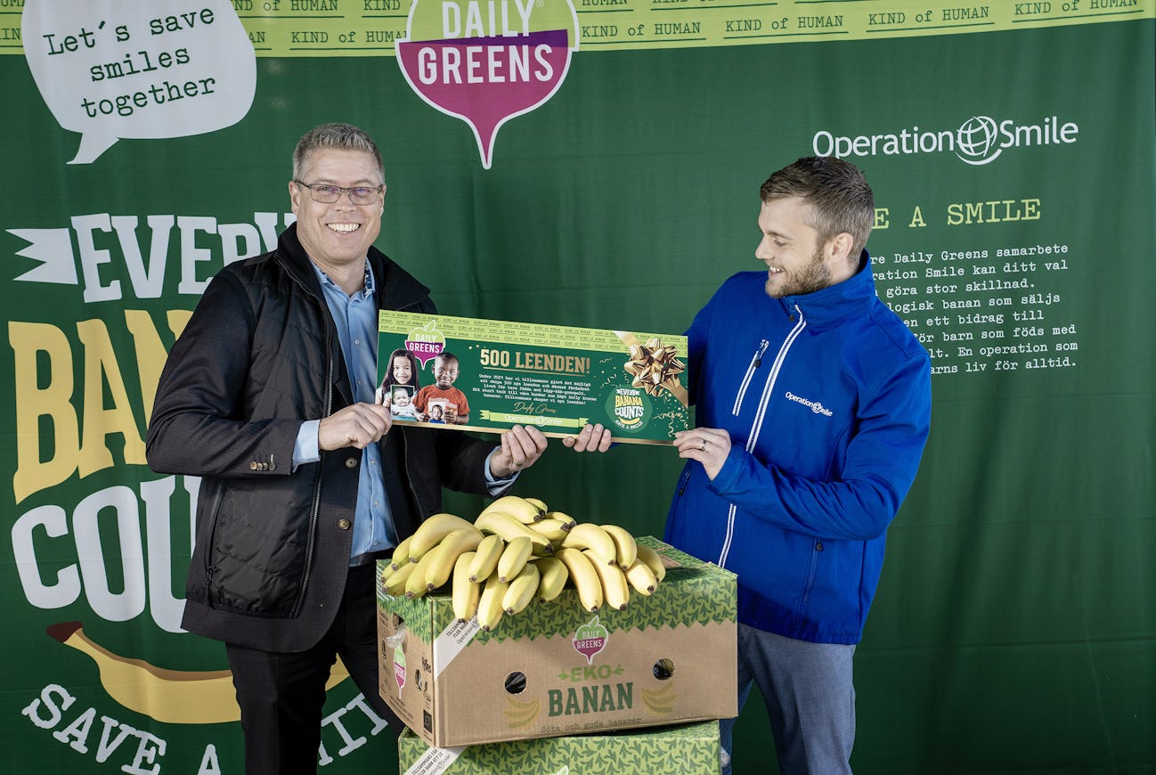 – En operation kan ta mindre än en timme, men ger ett barn ett nytt liv och ett nytt leende. Därför har vi gjort om vår banankedja till ett kretslopp där vi ger tillbaka. Vi visar konsumenterna att deras val av banan kan göra skillnad. Varje banan blir ett bidrag från oss och våra kunder, så att Operation Smile kan fortsätta sitt fantastiska arbete, säger Magnus Falk, marknadschef på Daily Greens.