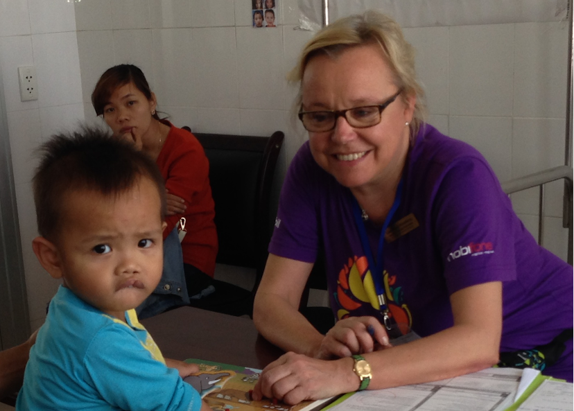Jag delar sal med tandläkarna – Monica Barr Agholme från Huddinge och Hanan från Amman i Jordanien. Jag har en tolk till min hjälp. Hon heter Kranh och är medicinstudent från Hue. Min uppgift är att titta i munnen och ta reda på om patienten har svårt att äta och dricka, eller svårigheter med tal, språkförståelse och hörsel. Sedan ska jag lyssna ifall patienter – de som är gamla nog att prata – har en nasal klang eller svårigheter med artikulation och munnens motorik. De får titta på bilder med olika föremål och namnge dem, räkna till tio och repetera stavelser som pipipi, tititi, kikiki, sisisi. Allt för att jag ska kunna skapa mig en uppfattning om deras uttal. Utan att kunna mer än enstaka ord på vietnamesiska fungerar detta genom att jag först lyssnar på patienten och sedan när tolken eller föräldern upprepar det rätta målordet.