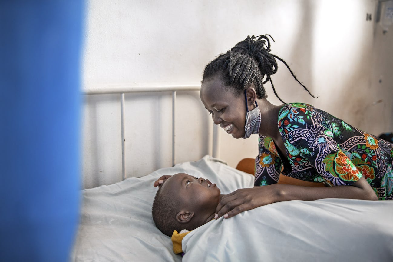 Valentine, 5 år, kom till sjukhuset med sin pappa, Jean, efter en tre och en halv timme lång bussresa. Familjen på fem – Valentine har två äldre bröder – bor på landsbygden i norra Rwanda, i ett litet hus med två rum och utan vare sig rinnande vatten eller elektricitet.